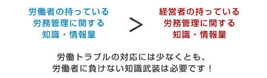 ともすれば、経営者より労働者の⽅が労働関連法を知っているケースもあります。