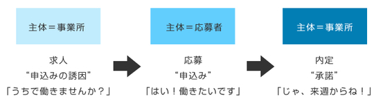 ※会社からの「申し込みの誘因」→応募者からの「申し込み」→会社の「承諾」を経て労働契約が成立する