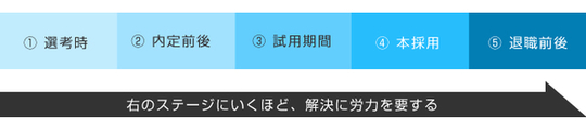 「労働トラブルの元を絶つ」という意味では、やはりこの選考時が大変重要であることは言うまでもありません。採用選考時に、いかに「トラブル予備軍」を排除するかです。トラブル予備軍が少なければ少ないほど、その後の雇用のステージである試用期間、本採用後においてもトラブルが発生する確率は格段に低下します。